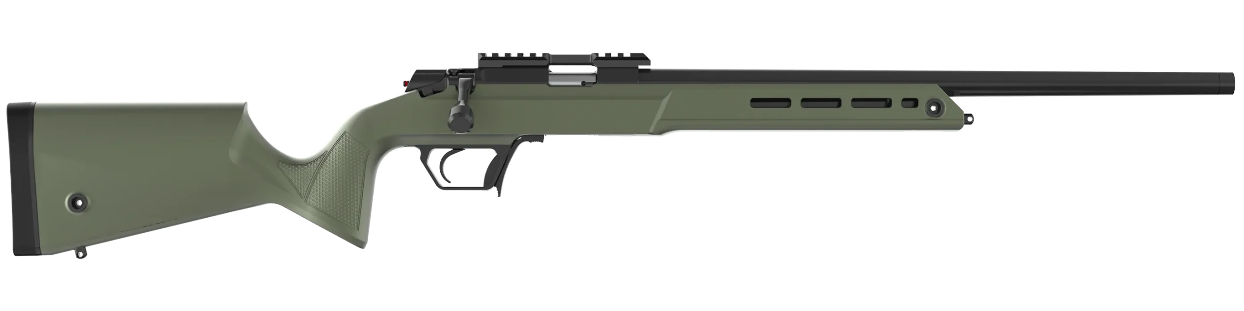 The free-floating barrel, precision deep-bore drilled, ensures consistent accuracy by minimizing contact with the stock. Both the barrel and receiver are black chrome plated for superior corrosion resistance, enhanced durability, and a sleek, professional finish.