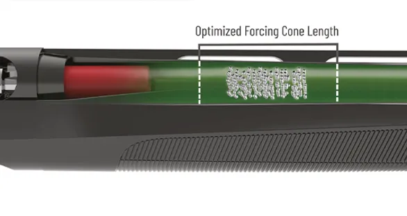 One of the first things performance shotgun owners typically do with their new shotgun is to send it to a custom gun shop to get the forcing cone lengthened. The forcing cone is that area in a shotgun where the shot load exits the wider chamber and enters the narrower bore. This area is typically very steep and short which can create excessive friction and pellet deformation. At Retay, we factory lengthen (and polish) the forcing cone in every barrel we make which, by reducing friction, increases shot velocity and, by reducing pellet collision and deformation, increases pattern density. This means better shooting performance right out of the box without the need for aftermarket gun smithing.